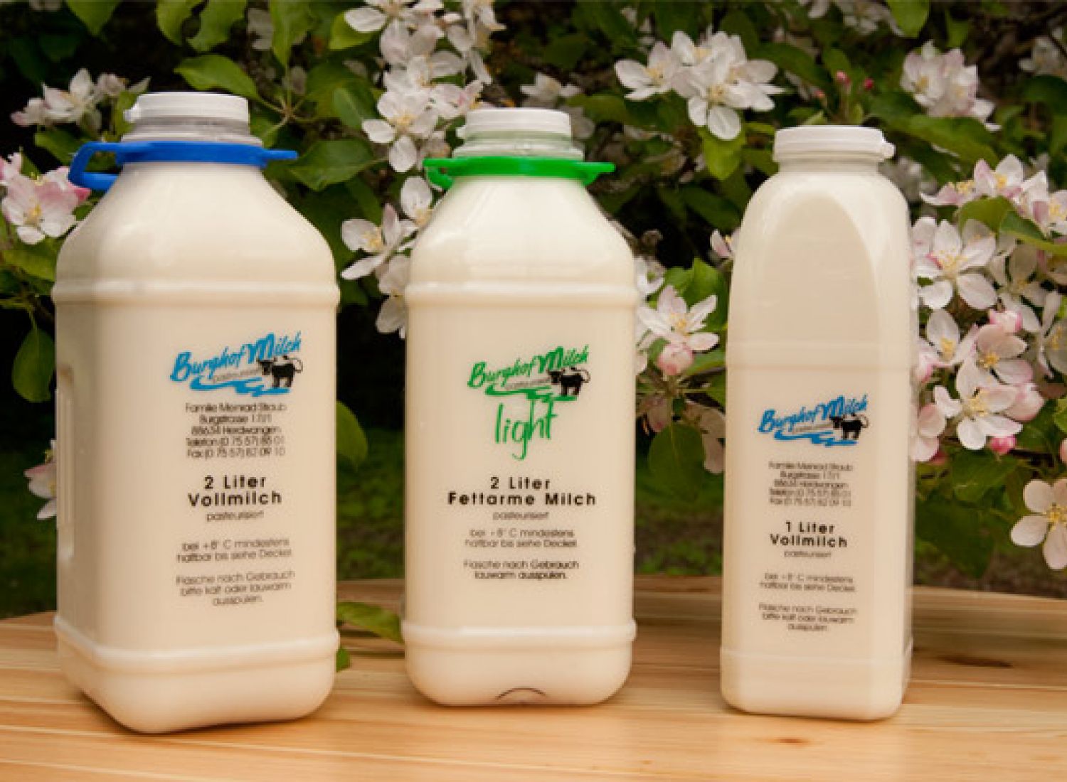 Unsere frische Burghofmilch gibt es als im Fettgehalt naturbelassene oder fettarme Trinkmilch.